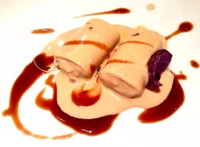 With the second course, Raul ventured the view that the best pairing of all for a young garnacha is bacalao (salt cod) fritters with a black garlic aioli. This youthful style of garnacha was given an exemplary showcase in Paniza Alto Cinco 2011 (Paniza is the name of both a small town and a high quality co-op). The wine is dense ruby in color but not at all heavily extracted. Smooth and soft, it has both a bouquet and flavor of cherry with a bit of spicy oak underneath. That spiciness is accentuated with the truffle aromas in the aioli and the salty tang of the buñuelos - a really heavenly match of velvet richness and rustic simplicity. Alto Cinco is made in partnership with the U.S. based Purple Wine Company, so it's guaranteed good distribution at least in the United States.