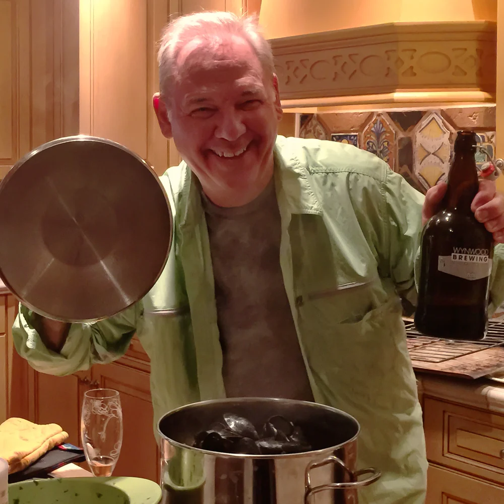 One of my favorite pastimes during the year-end holidays is to cook with friends. With one friend in particular I get together around noon, we make a brunch for fortification and then start cooking for the evening meal when other friends will join us. Of all the things we made this year, I think the most successful was a surprisingly simple pot of mussels cooked in beer that was our Christmas Day afternoon "snack." When I posted a photo of the bivalve buffet on Instagram and Facebook I had many requests for the recipe, which I'm delighted to share here.