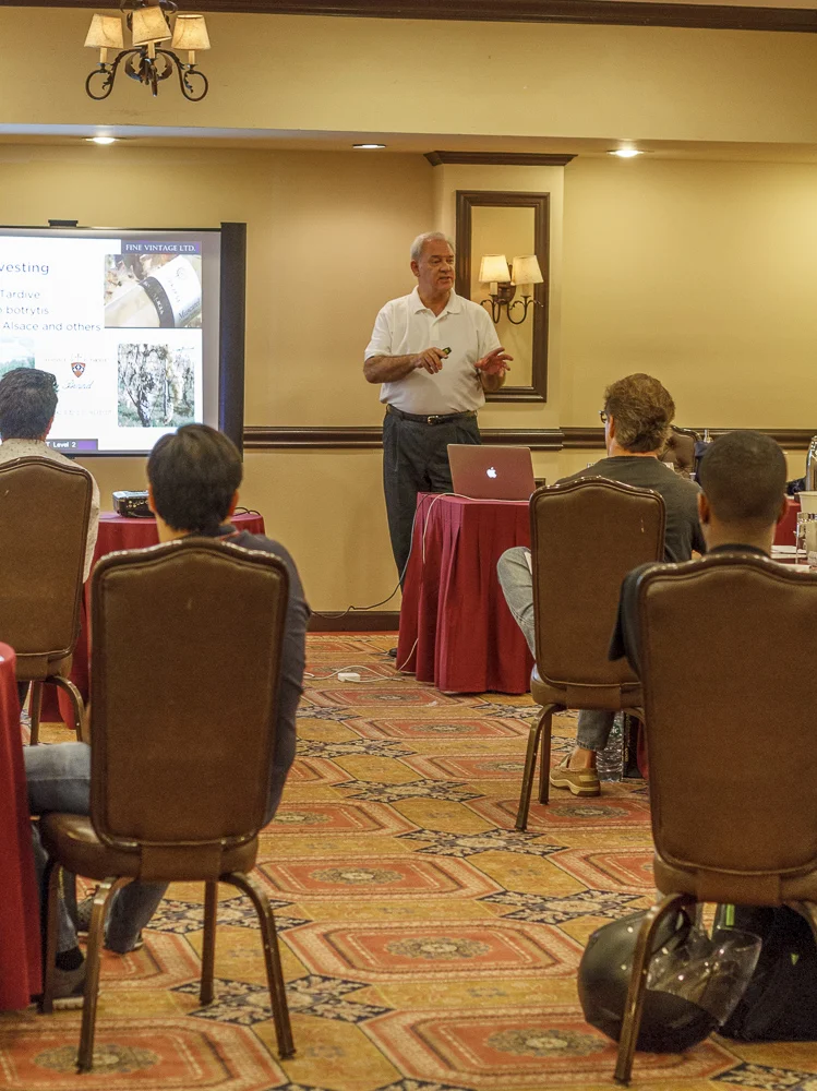 In brief, this class is for anyone who loves wine and wants to understand their passion better. It is also a wonderful starting point for anyone just beginning their exploration of wine. What is wine? Why does it taste the way it does? How do grape varieties differ? This class is the perfect place to hone your wine sensibility, whether your interest in wine is as an occasional consumer hoping to demystify a wine list when you go out to dinner, or a culinary professional looking to expand your wine knowledge beyond the basics that are part of culinary training. It's a full-day course that includes tasting 18 world-class wines from Vintage Champagne to classic wines from Spain, France, Italy and the United States. We are particularly proud of the high level of quality wine we serve in the Fine Vintage WSET courses — we strongly believe you cannot understand wine without having classic examples to taste.